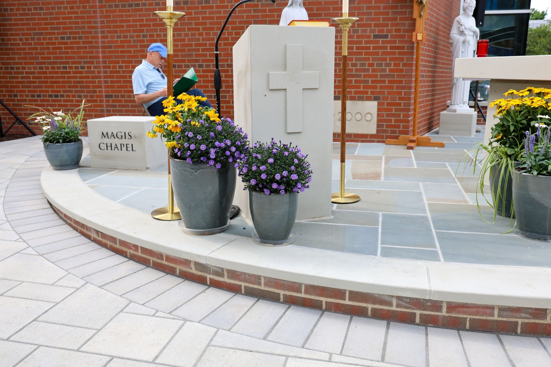 On Saturday, August 23, 2025, parishioners, school families, and friends gathered to celebrate the inaugural Mass in our new outdoor Magis Chapel and enjoy our freshly landscaped campus. We are sincerely grateful for all those who have contributed to the Gesu Century Campaign, with particular appreciation to our lead donors, Betty Skerl and her family and Steve & Debbie Klug. Their leadership gifts have transformed our community and demonstrate their commitment to our mission. In the words of Fr. Lukas Laniauskas, SJ, "It was so powerful to see our community praying through the intercession of our Lady of the Way, carving a path forward and grateful for the path behind as we move towards the next 100 years."